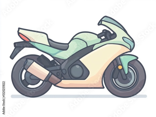 Cartoon Illustration of a Silver Sports Bike in 2D Style