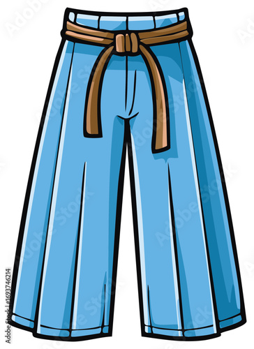 Cartoon Illustration of Wide Leg Blue Pants with Brown Belt - Apparel and Fashion