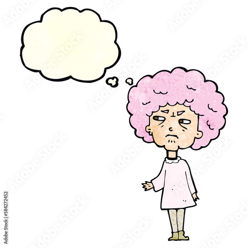 cartoon old lady with thought bubble