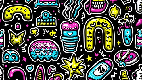 Cartoon Pattern with Colorful Stickers