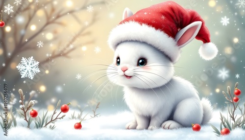 Cartoon rabbit Character Wearing Santa Claus Hat for Christmas
