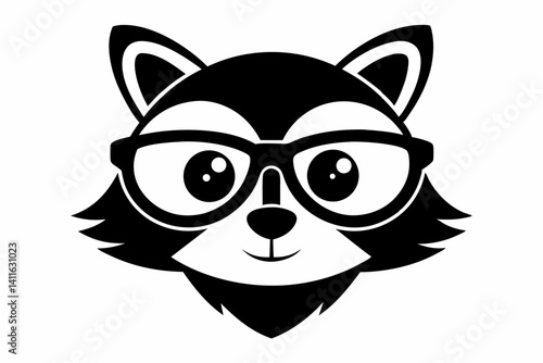 Cartoon Raccoon Head Wearing Glasses Silhouette Vector