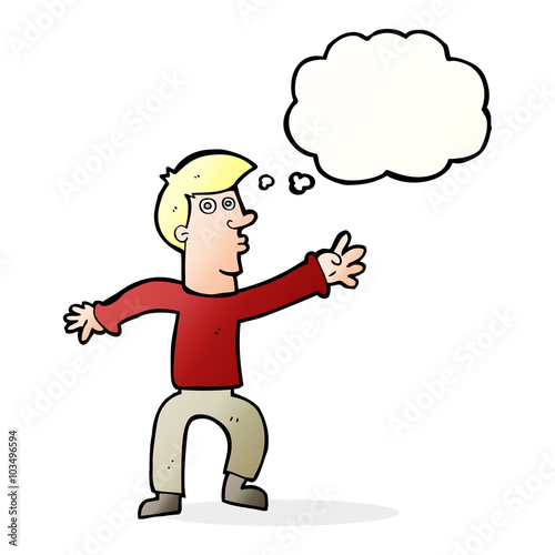 cartoon reaching man with thought bubble