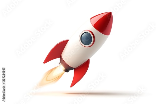 Cartoon Rocket Ship Launching, 3D Render, Startup Success, Innovation
