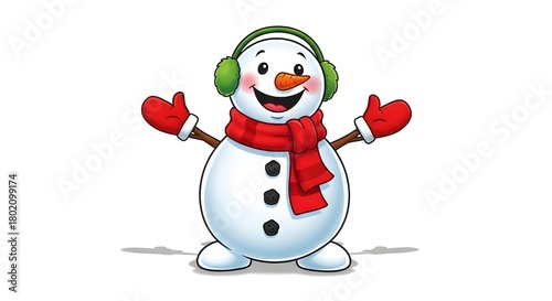 Cartoon snowman with earmuffs isolated on white background