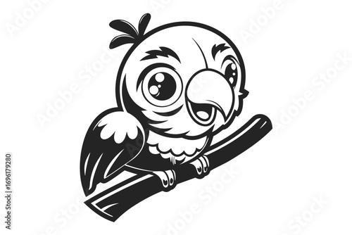 Cartoon Style Parrot on Branch with White Background