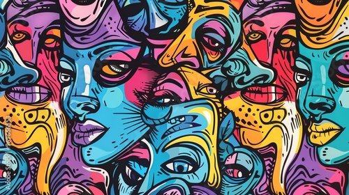 Cartoon style street art pattern wallpaper