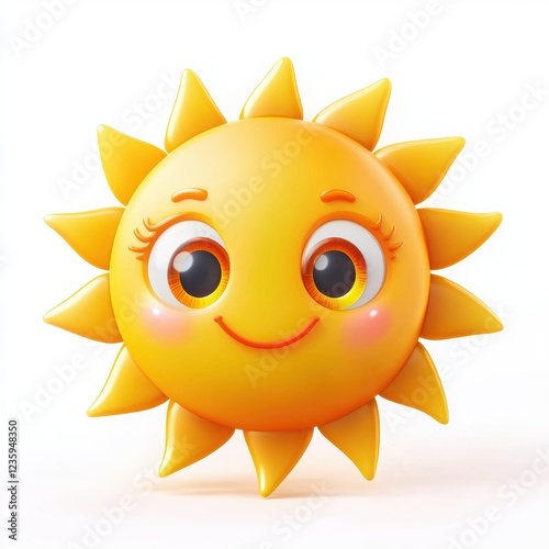 Cartoon sun with friendly eyes, radiating warm golden light, isolated on a clean white background