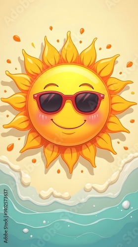 Cartoon Sun with Sunglasses at the Beach