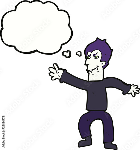 cartoon vampire man with thought bubble
