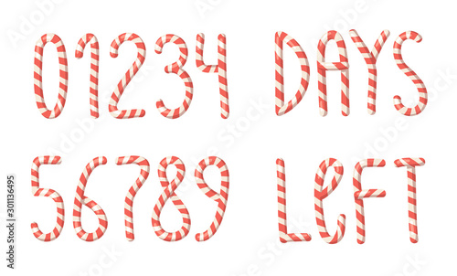Cartoon vector illustration Christmas Candy Cane. Hand drawn font. Actual Creative Holidays sweet alphabet and word DAYS LEFT and numbers