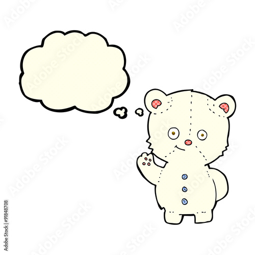 cartoon waving polar bear cub with thought bubble