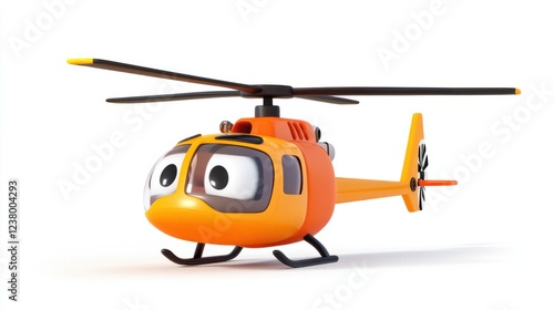 Cartoonish, bouncy helicopter with a cute expression and animated motion lines, isolated on white