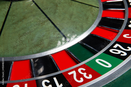 Casino roulette wheel. Close-up.