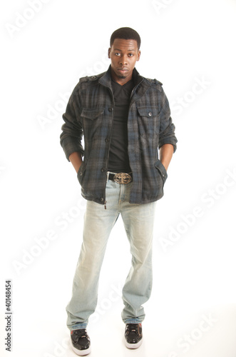 Casual black male model on white isolation