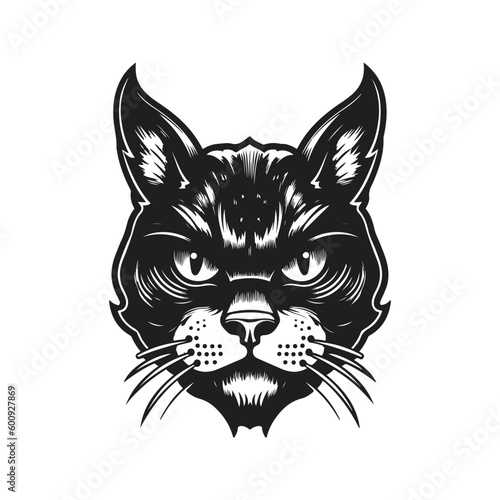 cat head, vintage logo line art concept black and white color, hand drawn illustration