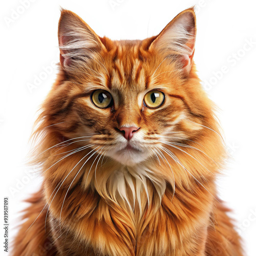Cat with red fur isolated on white background