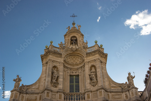 Catania baroque basilica Collegiata, detail of the top facade and its architecture