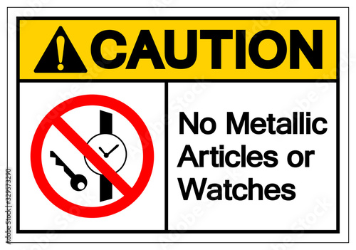 Caution No Metallic Articles Or Watches Symbol Sign, Vector Illustration, Isolate On White Background Label .EPS10