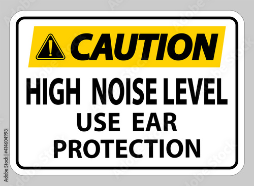 Caution Sign High Noise Level Use Ear Protection on White Background