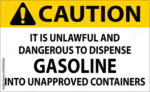 Caution Sign It Is Unlawful And Dangerous To Dispense Gasoline Into Unapproved Containers