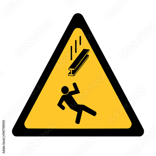 Caution Sign Warning Danger falling objects sign, Triangle yellow warning sign, under construction area, vector illustration flat design isolated on white background