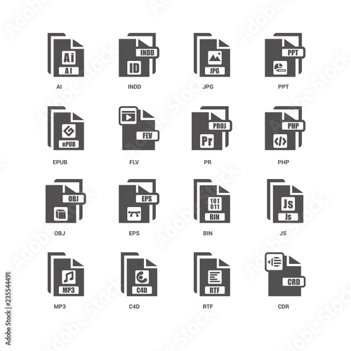 Cdr, Php, PR, Mp3, Js, AI, Epub, Obj, Rtf, C4d, Jpg icon 16 set