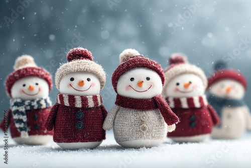 Celebrate the joy of Merry Christmas with cheerful snowmen in cozy winter outfits against a snowy backdrop welcoming the New Year