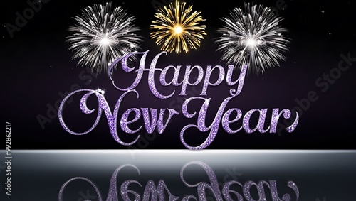 Celebrate the New Year with this elegant and festive design, perfect for capturing the excitement of the holiday. The words "Happy New Year" are written in graceful, swirling cursive.