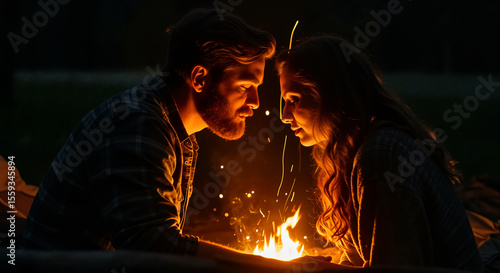 Celebrating International Kissing Day with a Romantic Campfire Embrace Under the Night Sky