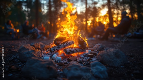 Celebrating national s'mores day people gathering around a campfire in nature's embrace at sunset