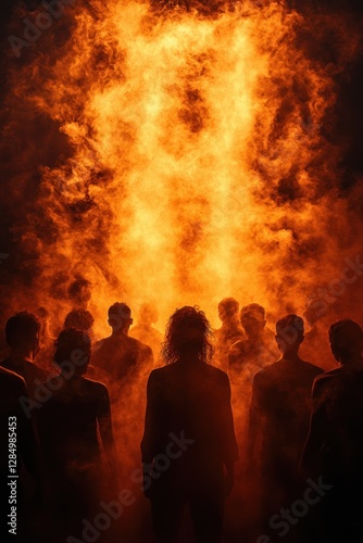 Celebratory Footbal Fans with Flare and Smoke in Silhouette