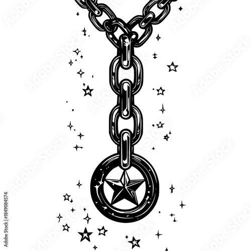 Celestial Chain: Whimsical Starry Night Necklace Magical Charm | Clean, isolated vector art for creative projects.