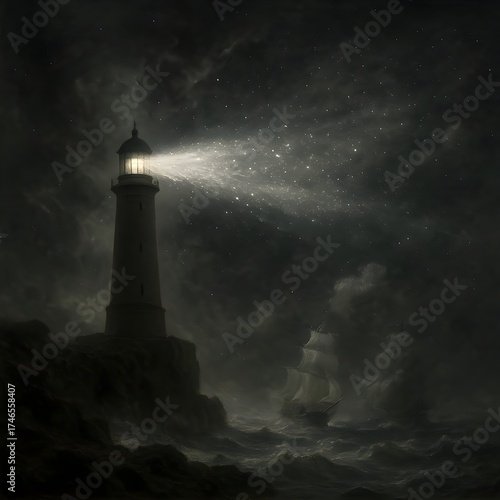 Celestial Lighthouse and Cloud Ships — Epic Romantic Painting