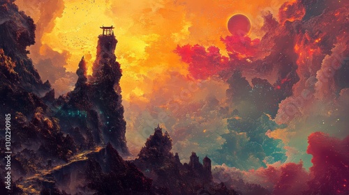 Celestial Mountain Peak: A Fantasy Landscape