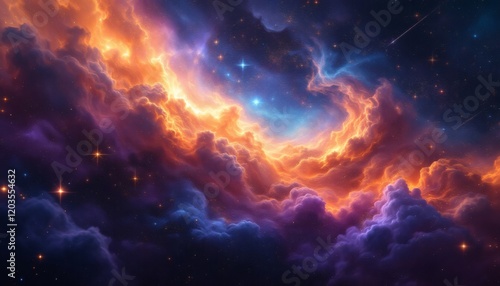 Celestial Nebula: A Cosmic Dreamscape of Fiery Hues and Starry Dust