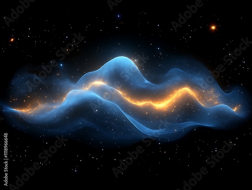 Celestial Waves Of Blue And Gold Light In Space