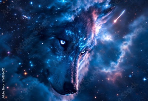 Celestial Wolf: A Mystical Portrait in Blues and Stars