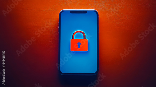 cell phone with padlock on screen, blue and red colors