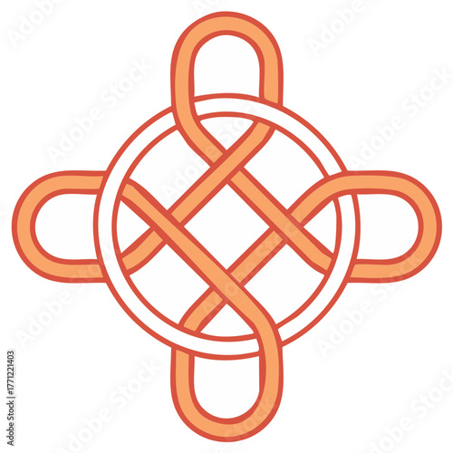 Celtic knot design in orange and white color, intricate geometric pattern