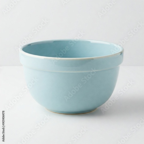 ceramic mixing bowl in blue pastel color on white background.