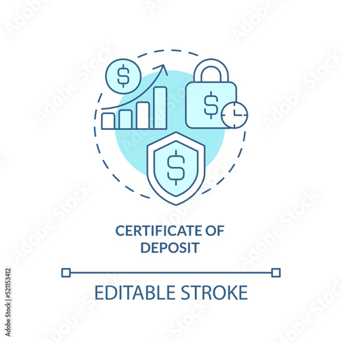 Certificate of deposit turquoise concept icon. Financial safety. Saving account abstract idea thin line illustration. Isolated outline drawing. Editable stroke. Arial, Myriad Pro-Bold fonts used