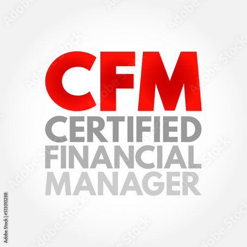 CFM Certified Financial Manager - finance certification in financial management, acronym text concept background