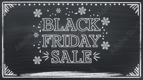 Chalkboard Style Black Friday Sale Announcement Snowflakes - Festive Holiday Shopping Promotion Graphic Retail Marketing E-commerce