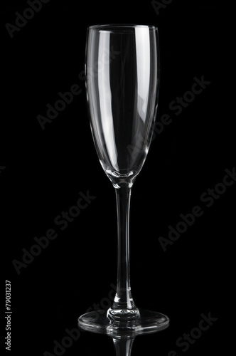 Champagne empty glass isolated on black background