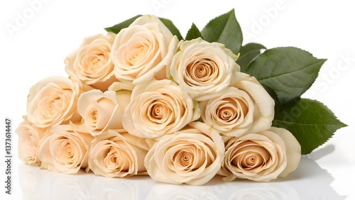 Champagne-Colored Roses Arranged in a Stylish Composition, Isolated on a White Background, elegantly arranged for a luxurious and timeless aesthetic, Clean and Sophisticated Botanical Stock Image
