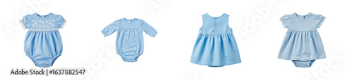 Charming baby dress collection fashion boutique apparel showcase bright studio eye-level kidswear inspiration. Cut out PNG set