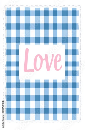 Charming blue checkered pattern with the 'Love' in a playful font.