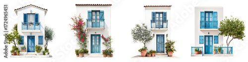 Charming Greek Island Houses: Watercolor Collection of White Buildings with Blue Accents