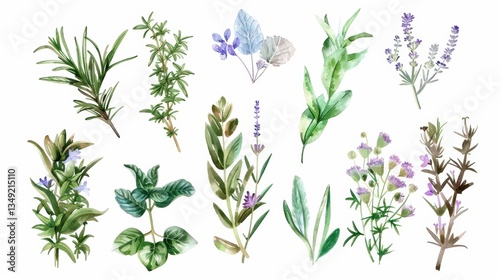 Charming Hand - Drawn Vector Watercolor Set: Herbs, Wildflowers, and Spices for a Rustic Touch